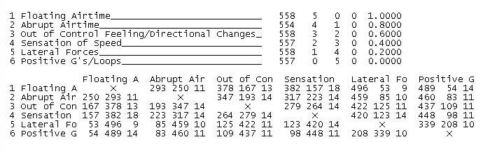 both were preferred to Lateral Forces and Positive G's/Loops. Positive G's/Loops