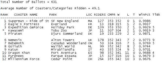 coaster in this year's top seven. Also of note is the large gap between the top five and #6 as #'s 3-5 had only two mutual-rider