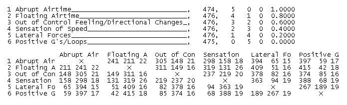 both were preferred to Lateral Forces and Positive G's/Loops. Positive G's/Loops